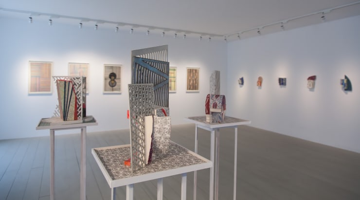 Ellis has always held a fascination for maps because they allow one to travel without leaving a space. It is possible to conjure ones own stories or imagine the landscape travelling through a map. Ellis translates these ideas to handmade paper, each sheet in-bedded with fragments and matter from locations all around the world and splices these against exotic block printed papers, rich with patterned information, each specific to a locality. He layers and fuses the information, treating each work as a frame within a frame, blending different compositions and spaces together. Each piece is built up with information ranging from cryptic diagrams, bloc printed patterns, abstract codes and symbols - all formed by Ellis making sense of both the physical and virtual environment surrounding him. His sculptures and relief works are extensions of this idea and can be seen as 3 dimensional maps, each piece having its own clearly defined terroir with gullies, valleys and pitfalls, filled with contradictory information and changing patterns depending on different viewing points.