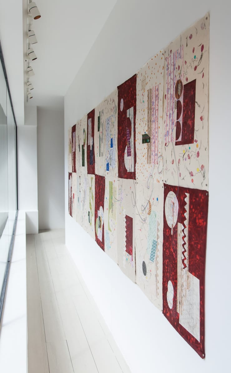 Research has always been an important factor in the development of his work and Ellis sights 'The Pattern and Decoration Movement', 'The Arts and Crafts',' Japanese block prints and wallpaper design as integral to the work, along with Chinese Suzhou windows, that frame ornate landscapes with abstract and symbolic patterns. Ellis has always been keen to reboot and investigate older ideas and aesthetics, reordering and splicing different genres together to create hybrid works. In essence his art studio is a melting pot of cultures and perhaps reflects the exchanges in knowledge over the centuries that crossed physical and metaphorical boundaries.
