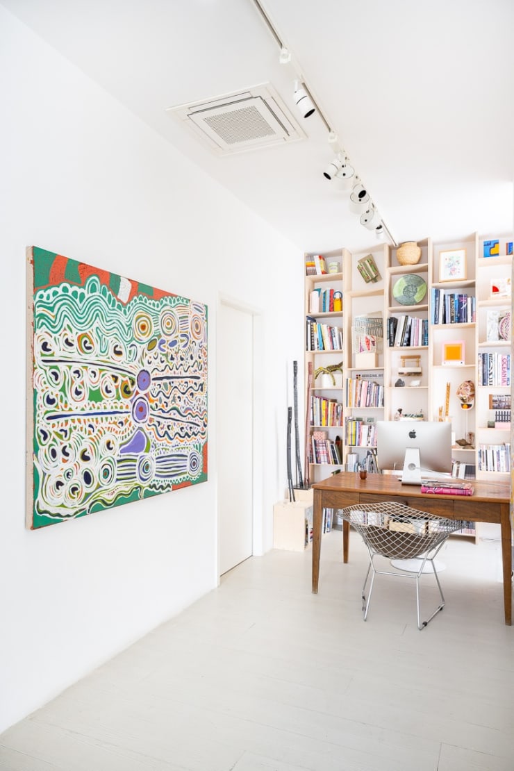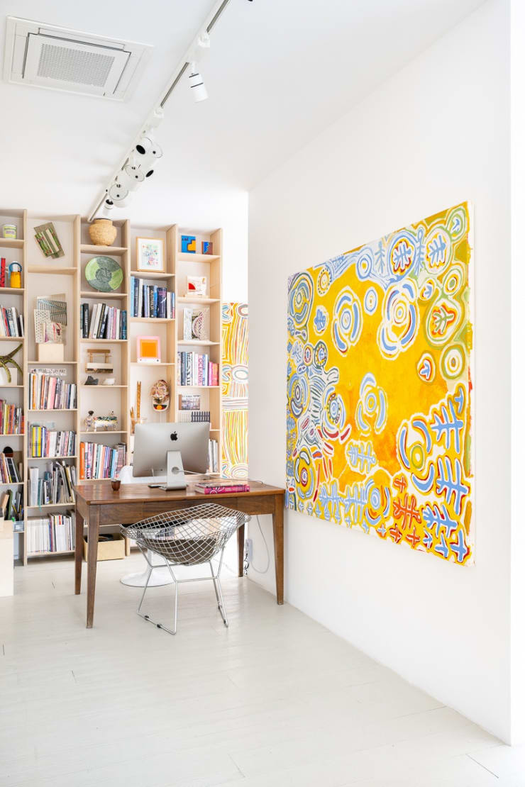 The paintings are rich in free-flowing brushwork, vibrant colours, symbolic shapes, as well as the use of mark making (dots, patterns, lines and textures), which characterises the abstract nature of Aboriginal art. Each painting is a bird's eye view of the artist's ancestral land, or Country, as told in the Dreaming, the Aboriginal stories and beliefs passed down through the generations. Every generation becomes a custodian of their Dreaming, and the artists often sing their Dreaming stories while they paint, as a way of keeping their links with Country alive.